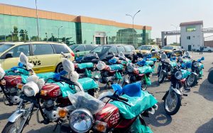 The distributed vehicles include 12 refurbished ones, 10 donated vehicles, and 27 motorcycles.