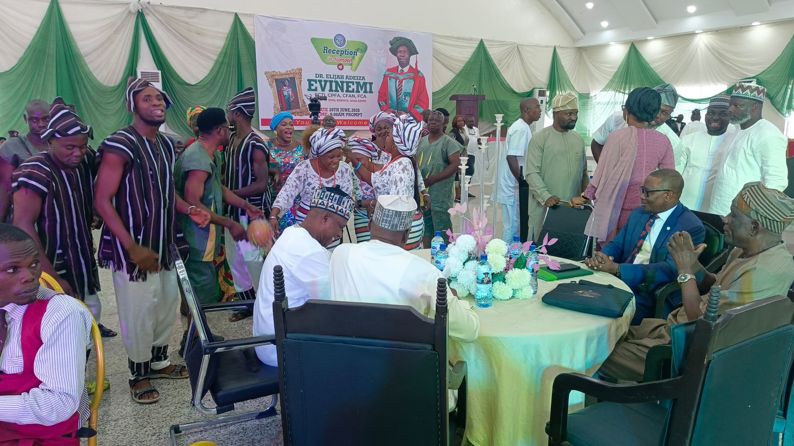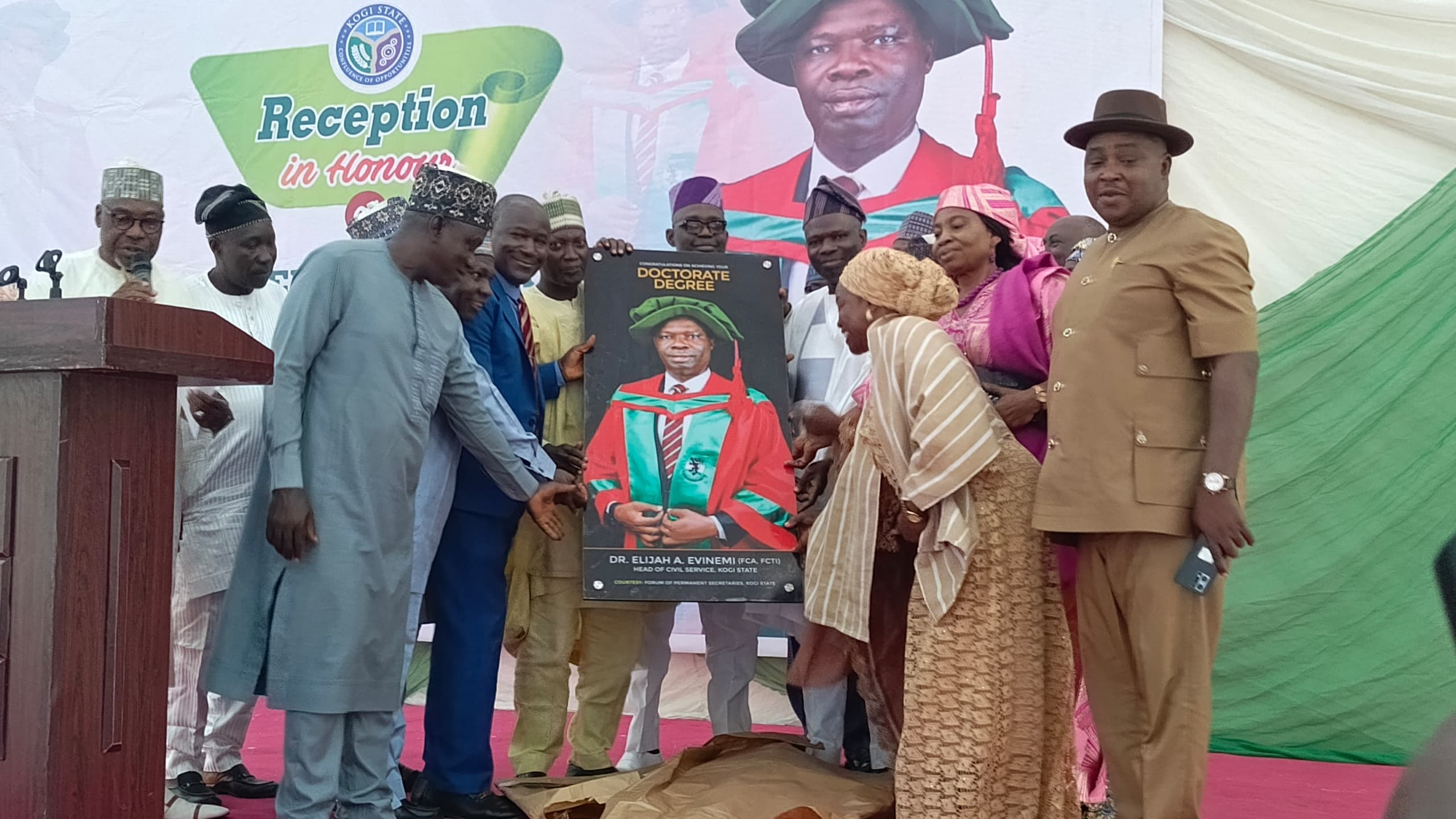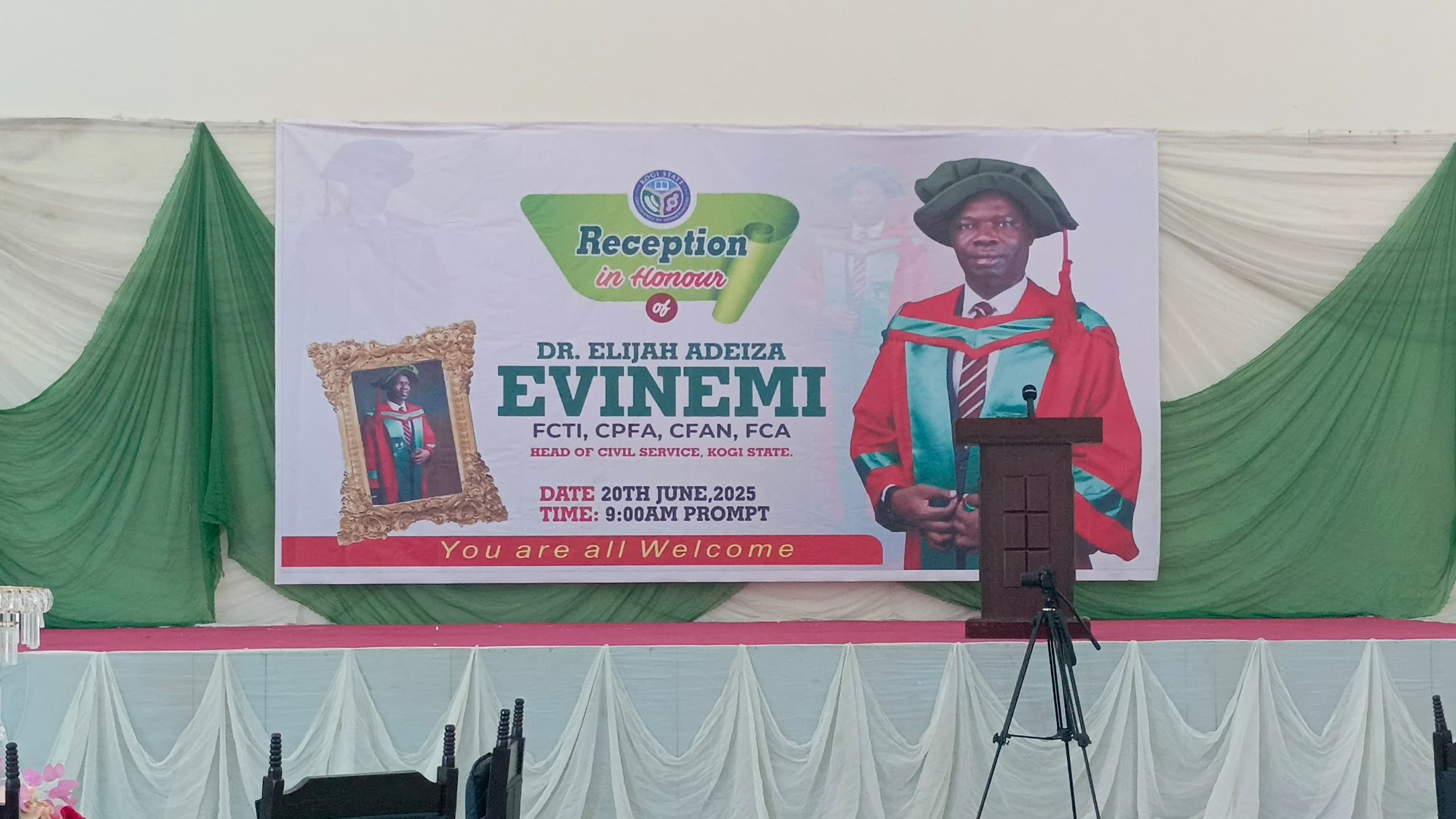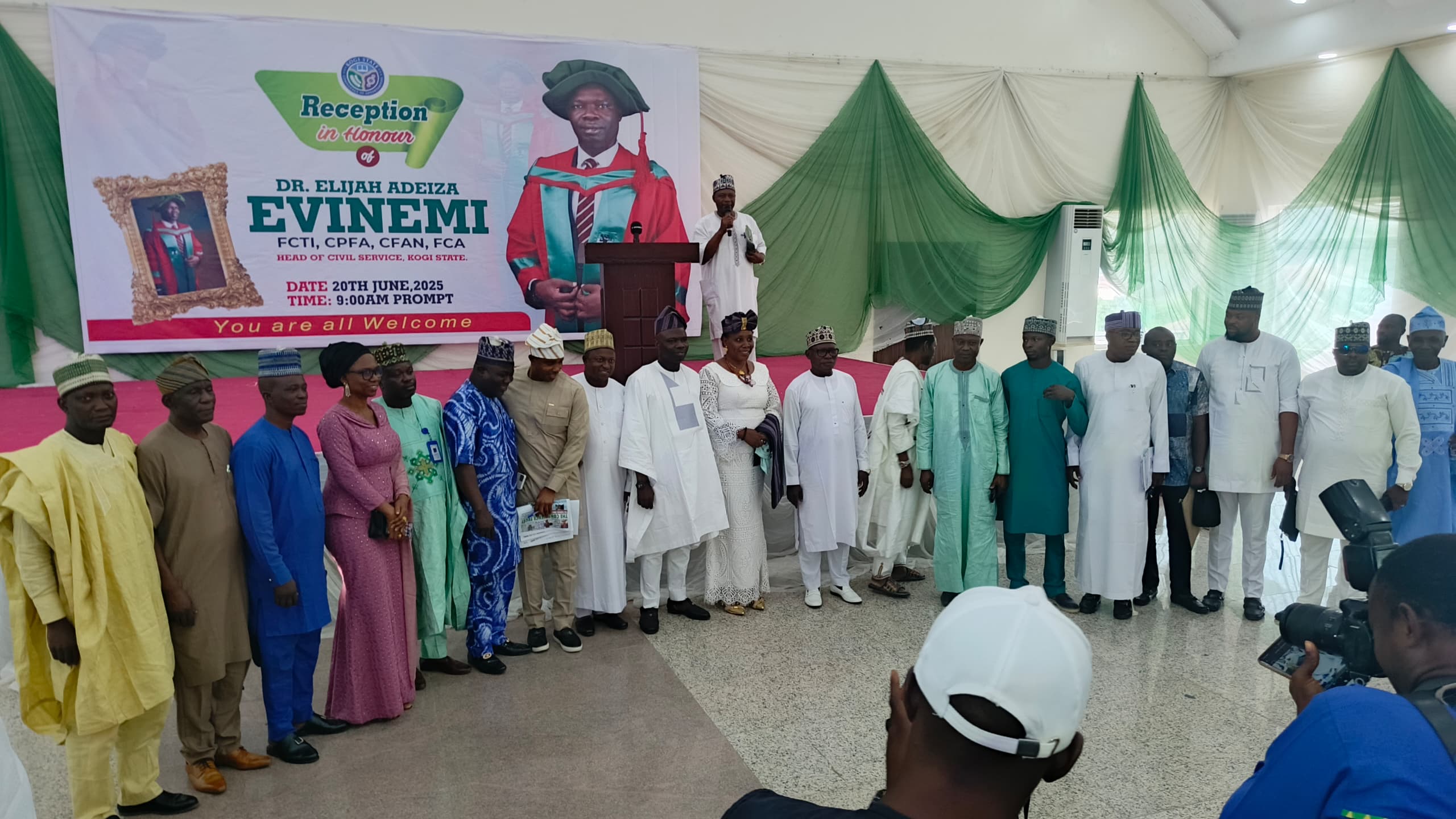 The Kogi State Civil Service on Thursday, June 20th, 2025, came together in an elaborate reception to celebrate the exceptional career and academic attainment of Dr. Elijah Adeiza Evinemi, FCA, the Head of Civil Service.