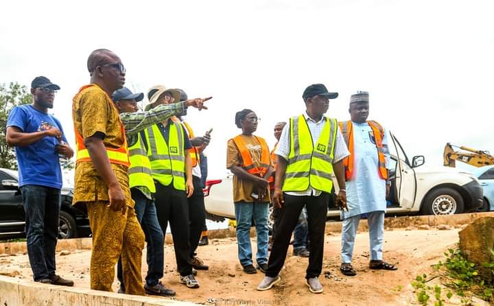 Engr. Yusuf was accompanied by Engr. Alhassan Akubo, Deputy Director of Civil Engineering, and Engr. Anthony Sule, Technical Assistant to the Commissioner, during the inspection, showcasing a unified effort towards achieving project goals.